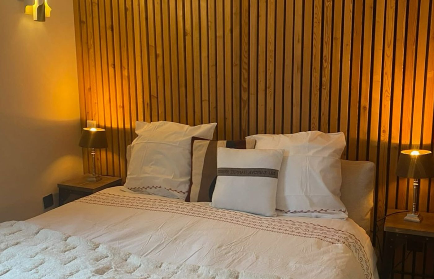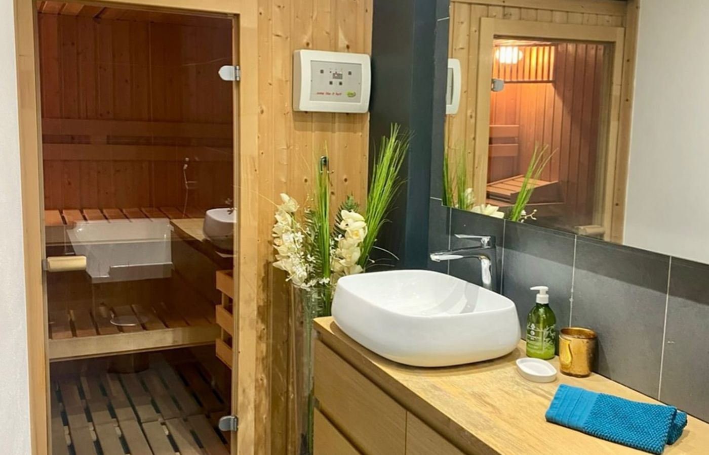 2 bedrooms with wardrobes, en-suite shower room (160 x 200 bed and 1 with 2 90 x 200 beds) and the third (140 x 200 bed) has a large room bathroom (Japanese toilet, shower and bath) with SAUNA, ideal after a great day of skiing or mountain.