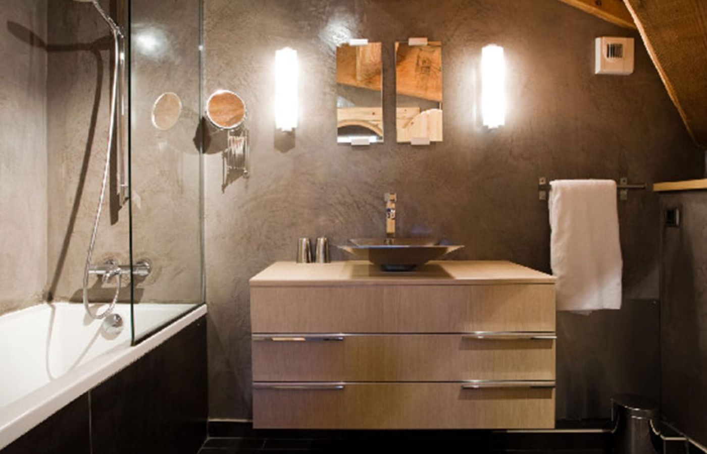 On the ground floor there is also the combined sauna-hammam with its shower and the technical room.