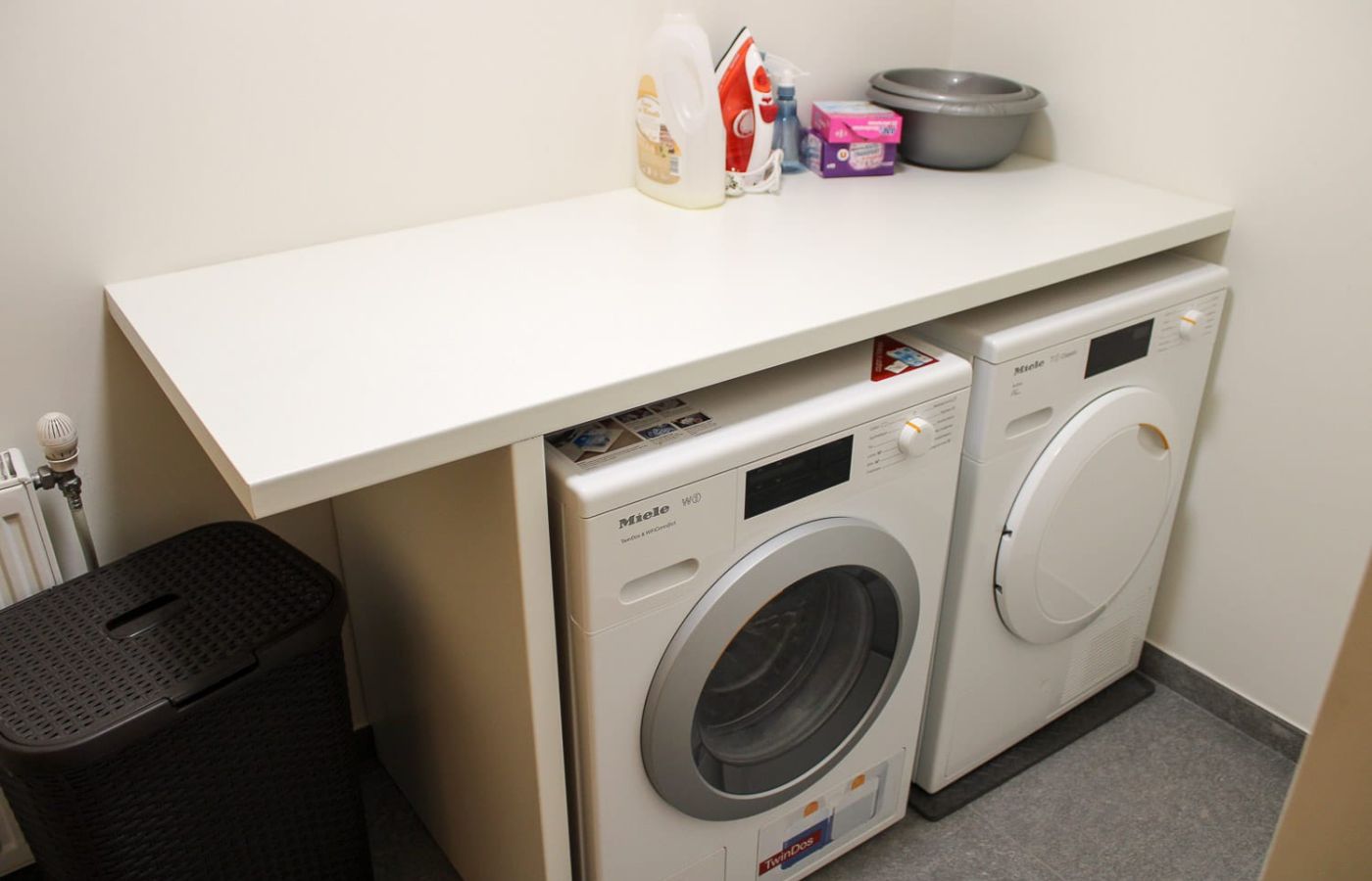- Garage couvert privé avec local à ski, buanderie avec lave-linge et sèche-linge