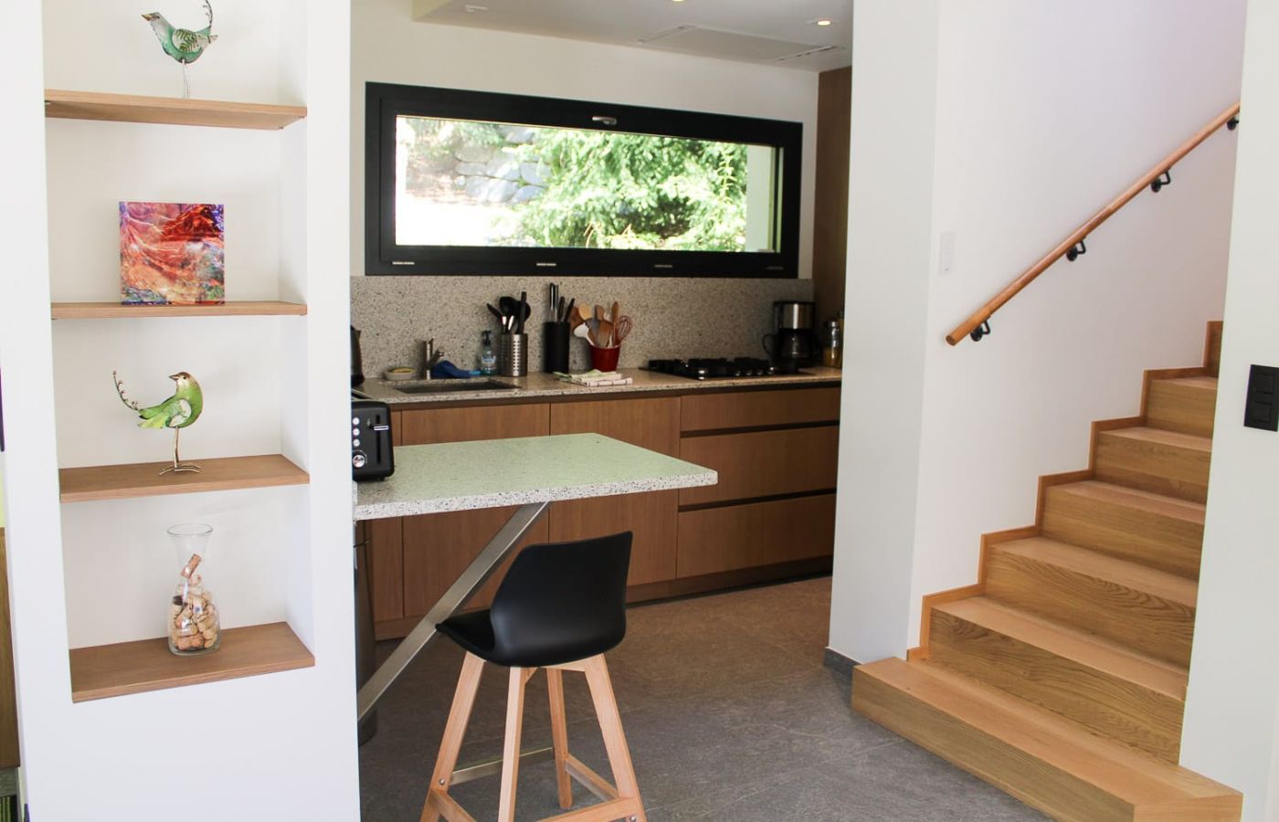 Le séjour est ouvert, moderne, élégant et bien équilibré, avec une superbe fenêtre panoramique.