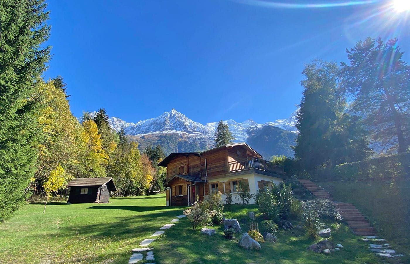 Jardin vue Mont-Blanc et la majestueuse de l’Aiguille du midi.
