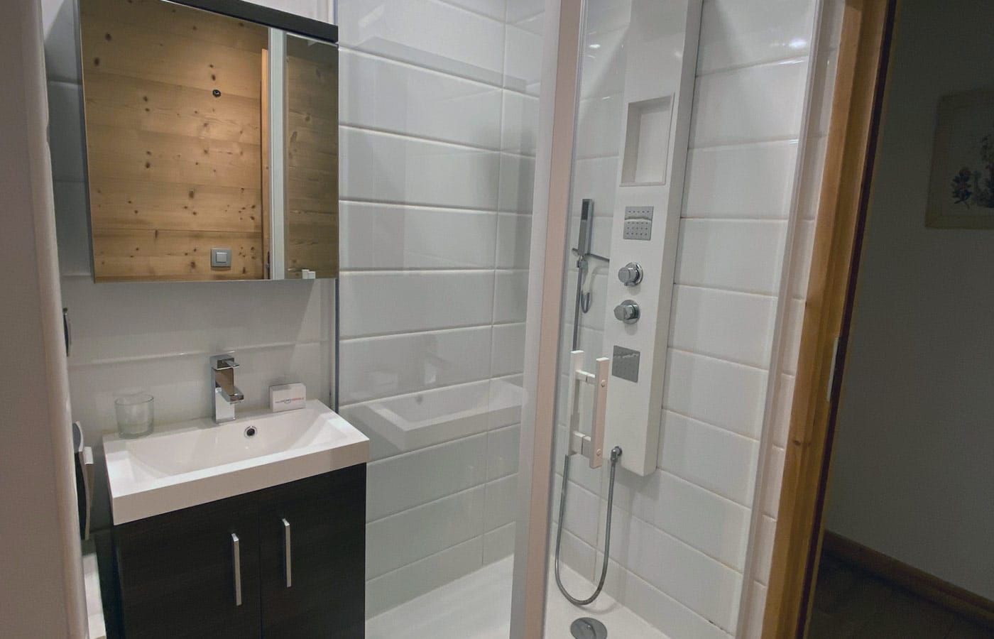 Sas d’entrée avec placards permettant de ranger, chaussures, vestes et skis.