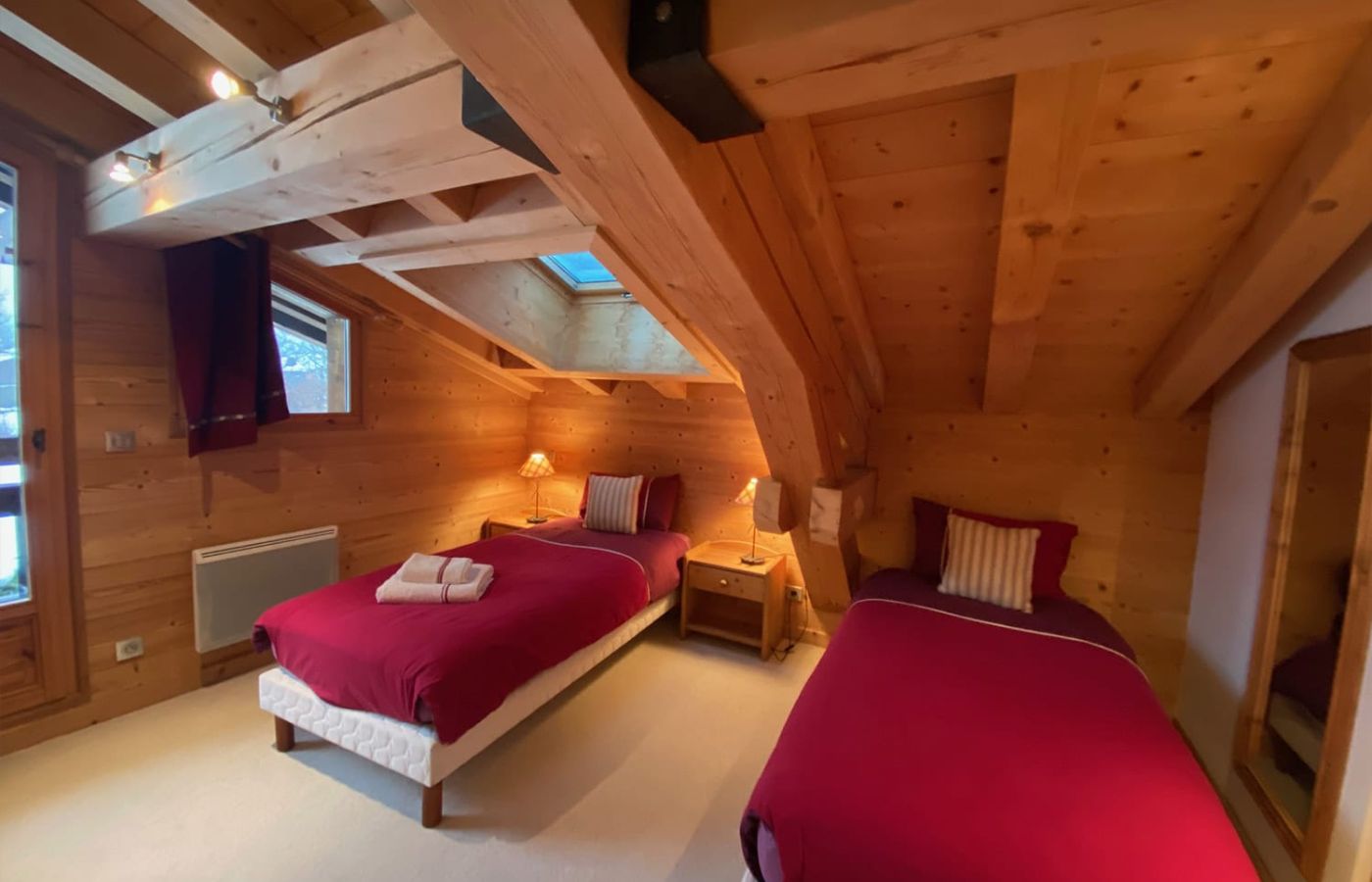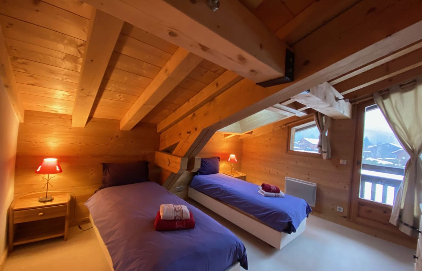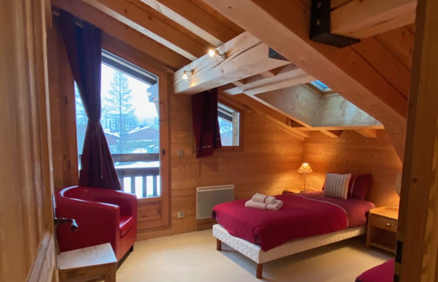 – 1 chambre 2 lits simples, exposition nord avec balcon vue sur le col de Balme.