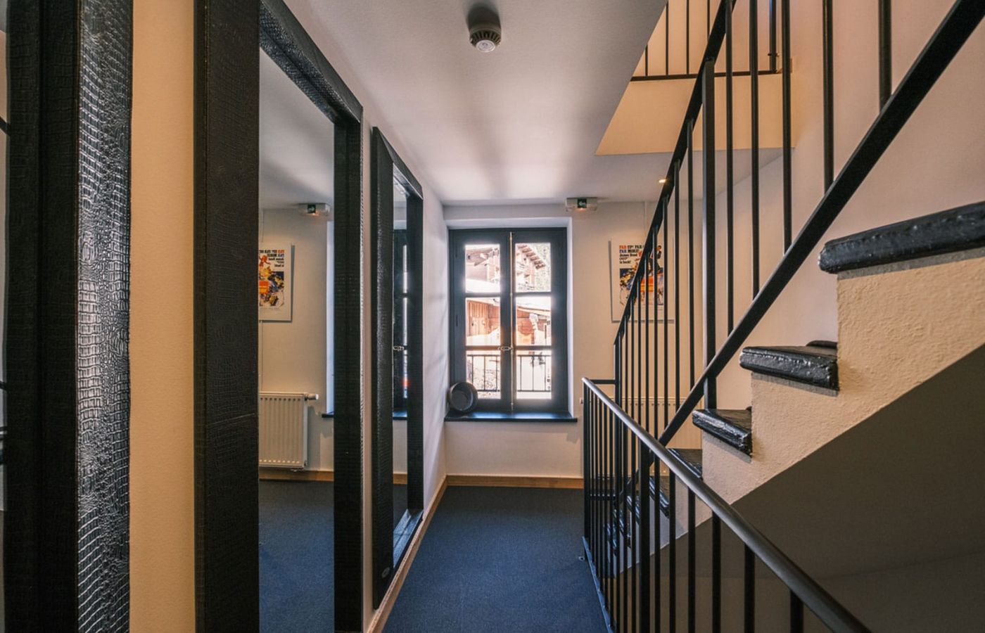 Dans les étages supérieurs se situent les chambres chacune avec salle de bain ou douche – WC et un grand espace télévision (Apple® TV)