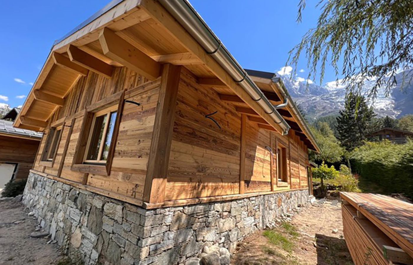 À 6 minutes du centre de Chamonix en voiture, ce chalet de 200 m2 actuellement en rénovation, offre une magnifique vue sur le massif du Mont-Blanc et d’un très joli jardin déjà paysagé de 1126 m2; avec du soleil toute l’année.